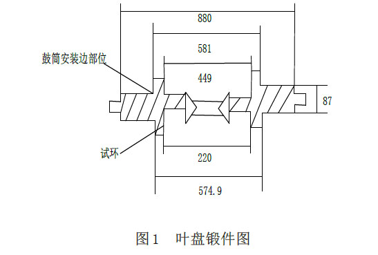 如圖1所示,整個(gè)葉盤鍛件由試環(huán)和鼓筒安裝邊部位組成。