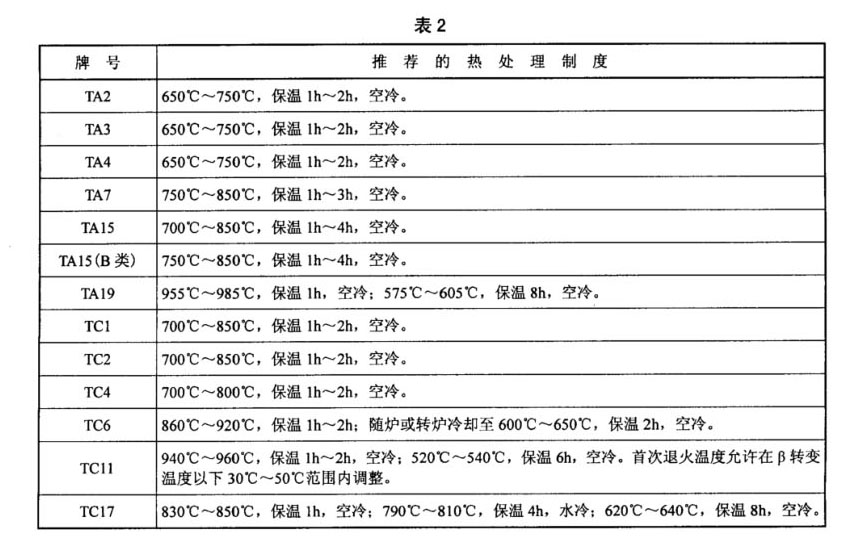 補(bǔ)充并調(diào)整了各牌號鈦合金試樣的推薦熱處理制度;