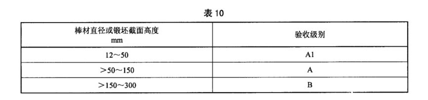 3.6.1 除B類用途的TA15鈦合金棒材外,棒材或鍛坯應(yīng)按GB/T 5193的規(guī)定進(jìn)行超聲波檢驗(yàn),其驗(yàn)收級別應(yīng)符表10的規(guī)定。