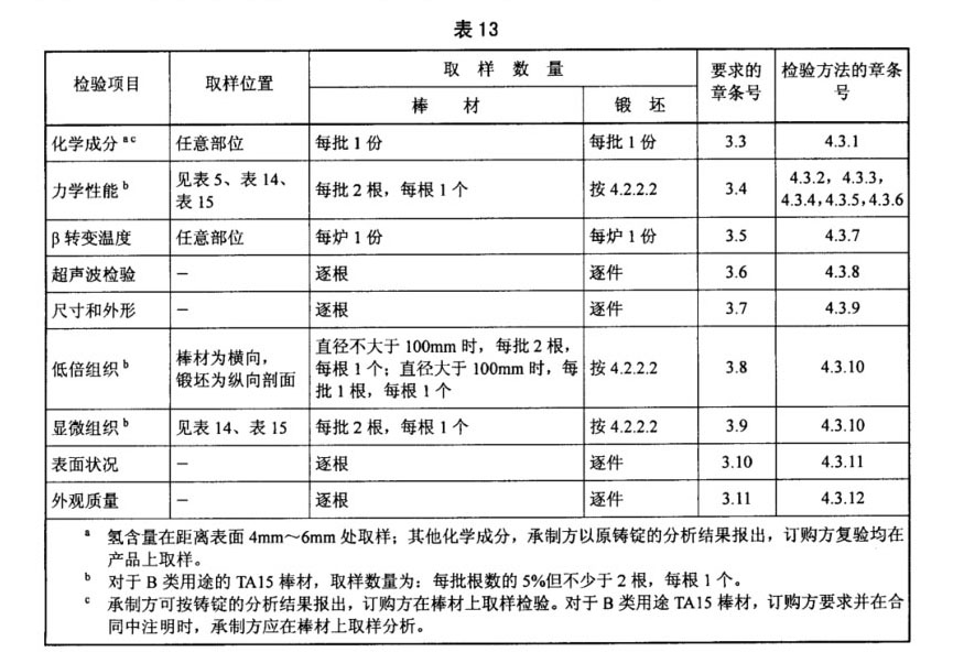 b)產(chǎn)品名稱、牌號、狀態(tài)、規(guī)格和數(shù)量,B類用途的TA15鈦合金棒材訂貨時(shí),應(yīng)予以注明;