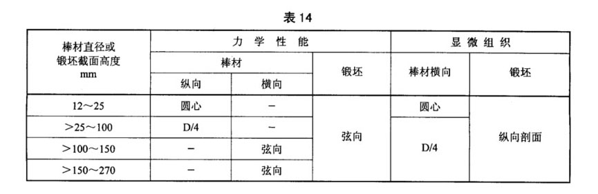 當(dāng)用同一鑄錠采用相近工藝,同時(shí)生產(chǎn)幾種規(guī)格相近的鍛坯時(shí),訂購方同意并在合同中注明時(shí),允許用最大規(guī)格鍛坯的性能和組織的檢驗(yàn)結(jié)果代表其他規(guī)格鍛坯的檢驗(yàn)。