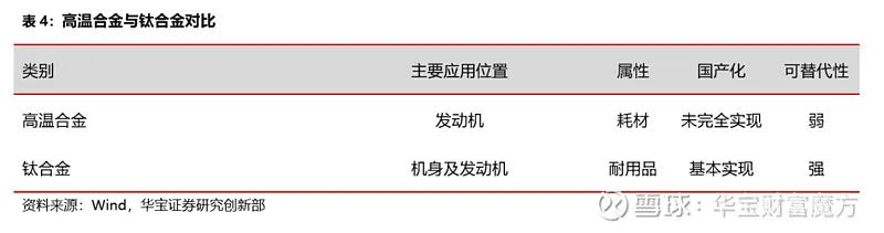 3、國產(chǎn)化程度不同:目前國內(nèi)航空鈦合金基本實現(xiàn)國產(chǎn)化,而高溫合金設(shè)備工藝仍存在進一步改進空間,尚未完全實現(xiàn)國產(chǎn)化,為進口替代留下充足空間,尤其是變形高溫合金國產(chǎn)化率提升空間相對顯著;