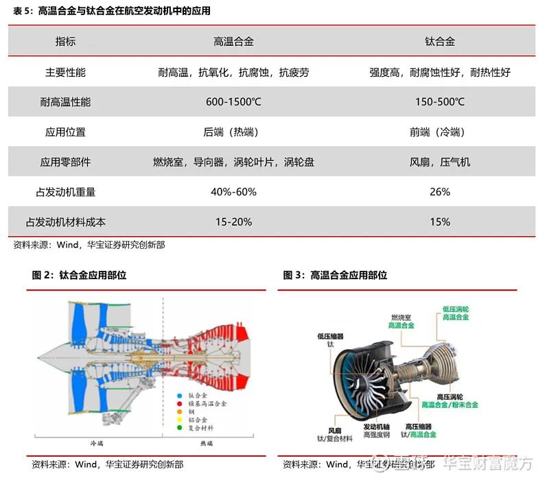 1、應(yīng)用位置不同:鈦合金需求在機身結(jié)構(gòu)件和發(fā)動機都有應(yīng)用,包括機身關(guān)鍵結(jié)構(gòu)件、,發(fā)動機結(jié)構(gòu)件和轉(zhuǎn)動件等,另外先進發(fā)動機鈦合金葉片風(fēng)扇和壓氣機占比達(dá)到40%;高溫合金則側(cè)重于發(fā)動機發(fā)動機結(jié)構(gòu)設(shè)計和制造,工藝極其復(fù)雜,,導(dǎo)致其需求周期往往略偏滯后,同時發(fā)動機維修價值較高,且壽命短于機身,維修和更換的需求疊加會放大高溫合金需求景氣的持續(xù)性;